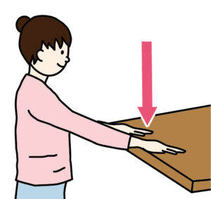 1.伸ばした腕が斜めになるように、机に手を置く。